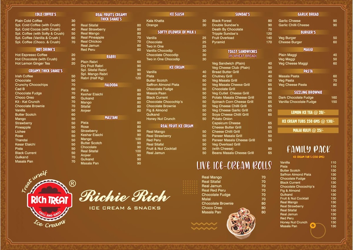 Richie Rich stands out with its diverse menu that caters to a wide range of cravings. Start your culinary journey with one of their delightful Toast Sandwiches. Among the crowd favorites are the Paneer Masala Cheese Grilled Sandwich and the Veg Cheese Club Sandwich, both bursting with flavors and accompanied by a crispy exterior that simply melts in your mouth. Vegetarian options like the Chocolate Hazelnut Grill and Spinach Corn Cheese Grill will delight your taste buds, while the Malai Kulfi and a variety of soft serve ice creams serve as the perfect sweet finishing touch.
