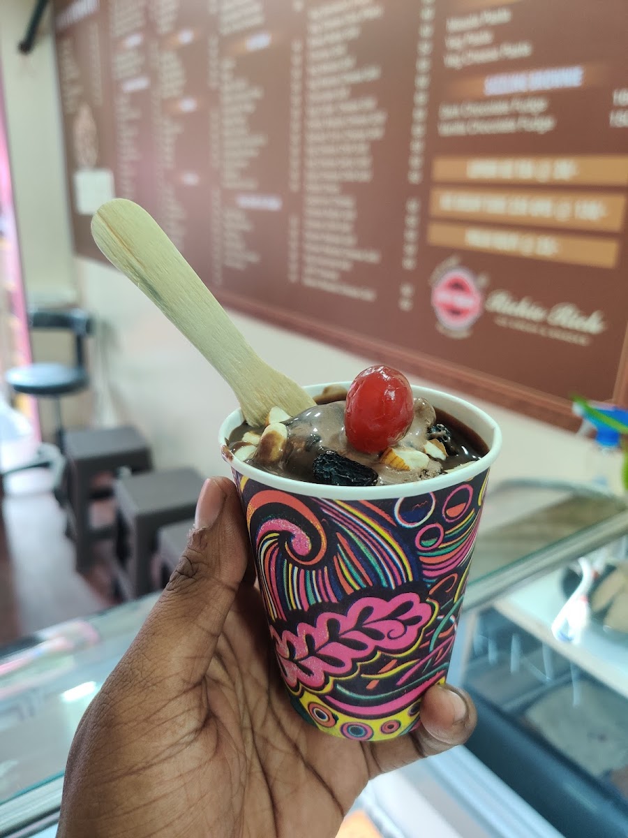 The café boasts a warm and inviting ambiance—you’re enveloped in a cozy yet chic vibe as soon as you step inside. The soft chatter, the enticing aroma of freshly made coffee, and the colorful display of desserts add to its charm. Customers like Sanjay Kosare rave about the cold coffee, specifically pointed out as one of the best in Pune, and its combination with their delicious soft serve ice cream is a must-try! Every detail, from the carefully crafted menu to the attentive service, contributes to making your visit utterly memorable.